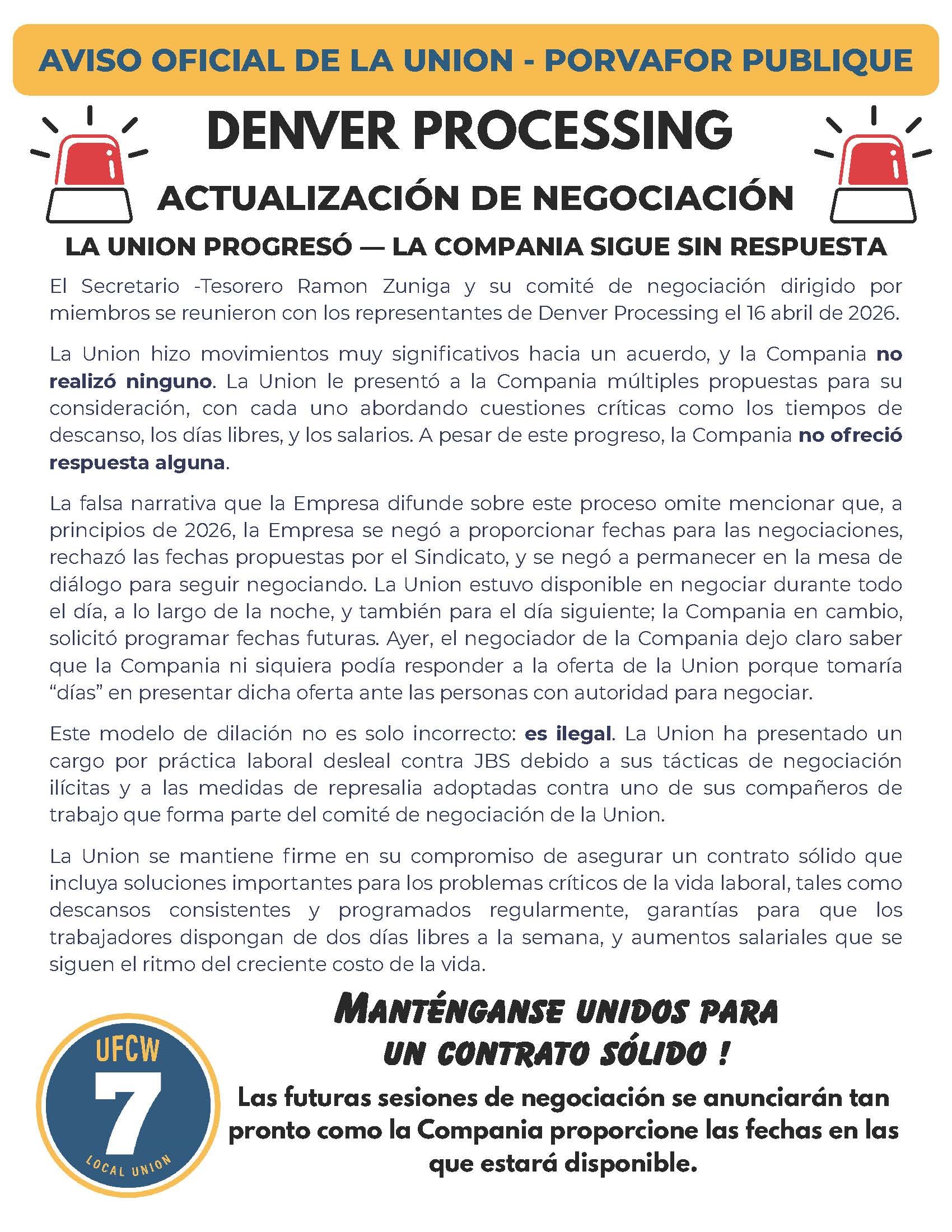ACTUALIZACIÓN DE LAS NEGOCIACIONES